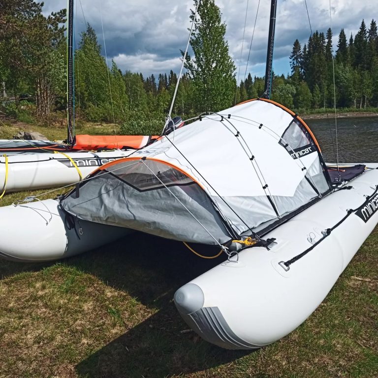Le MiniCat 520 Explorer est un catamaran à voile gonflable hautes performances conçu pour les navigations engagées et les aventures de plusieurs jours. Équipé de flotteurs multi-chambres ultra-sécurisés, d’un double châssis en aluminium robuste et d’un vaste trampoline avant pouvant accueillir du matériel ou une tente (Pod), il offre stabilité, autonomie et liberté totale.