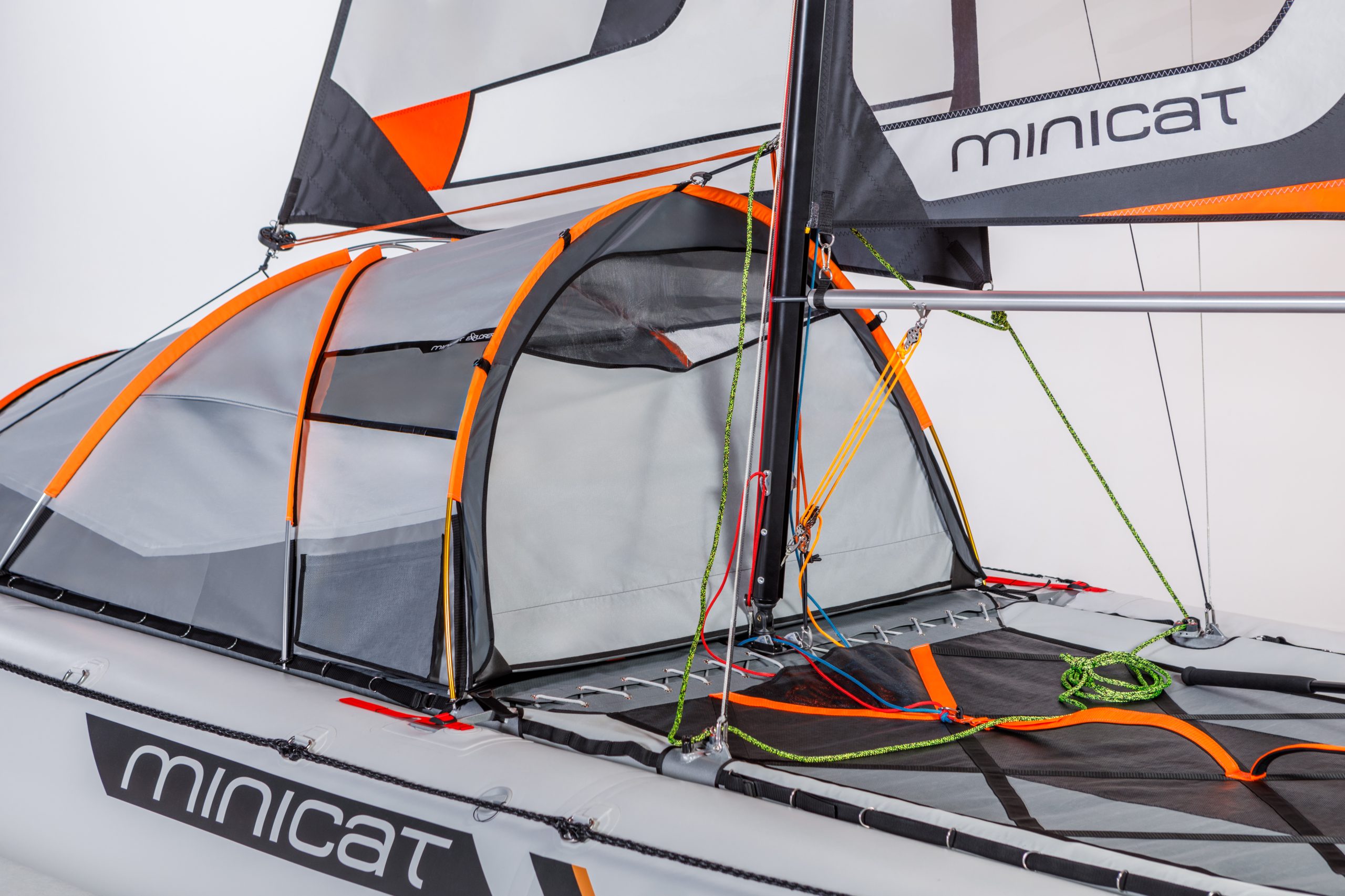 Le MiniCat 520 Explorer est un catamaran à voile gonflable hautes performances conçu pour les navigations engagées et les aventures de plusieurs jours. Équipé de flotteurs multi-chambres ultra-sécurisés, d’un double châssis en aluminium robuste et d’un vaste trampoline avant pouvant accueillir du matériel ou une tente (Pod), il offre stabilité, autonomie et liberté totale.